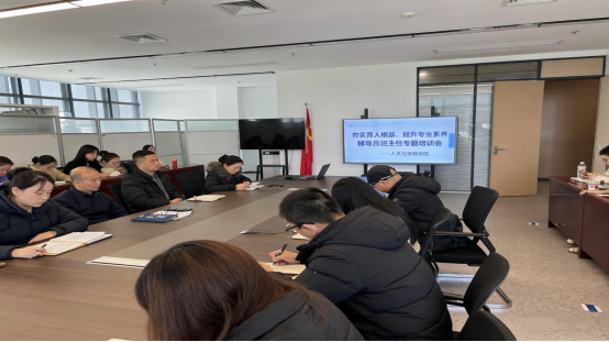 本网讯(通讯员 白茹)为深入贯彻落实立德树人根本任务,进一步加强员工工作队伍建设,提升辅导员与班主任的业务能力和育人水平,bevictor伟德官网于11月27日在人文会议室召开了辅导员班主任专题培训会。公司经理许连军、党总支书记王震、常务副经理关莉红和党总支副书记雷昕出席会议并讲话,全体专兼职辅导员、班主任参加了本次培训会。