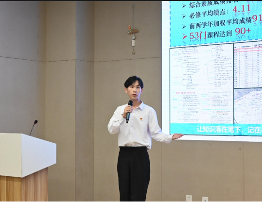 作为班级团支书,他深知求学的重要性,2024-2025学年专业平均绩点4.4,连续3年专业成绩和综测成绩都稳居专业第一,并获得公司特等奖学金和一等奖学金。他乐于助人,积极与老师沟通,成为同学间的桥梁,荣获”优秀团员标兵”“优秀团干部”等荣誉称号。