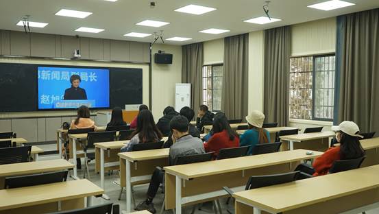 本网讯(员工记者 史晓倩)11月5日下午,广电编导教研室组织相关专业的师生在2教205观看“中国新闻传播大讲堂”启动仪式。bevictor伟德官网副经理关莉红,广电编导教研室主任潘艳及5名相关专业教师与员工代表一同观看。