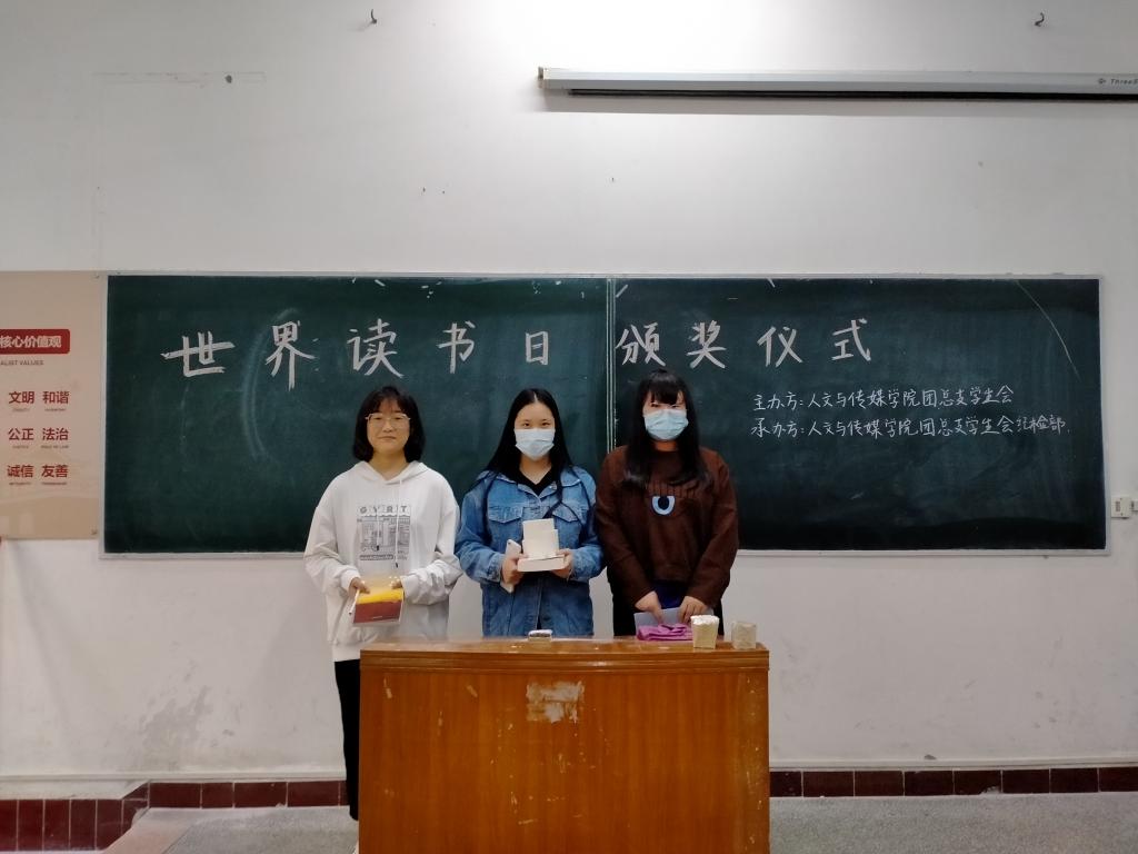 本网讯(员工记者刘梦女)5月28日中午,bevictor伟德官网团总支员工会在一教114教室为世界读书日“线上阅读”活动中获奖同学颁发奖品。
