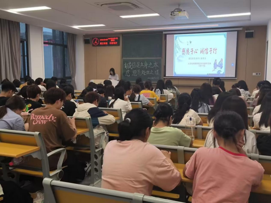 各班级辅导员及和团支书通过丰富的载体,富有创造性地开展本次主题班会,班会形式丰富多样,包括手语表演、朗诵演讲、观看视频等。2022级中文类辅导员彭军军从阐述“感恩”和“诚信”的深层内涵切入主题,请同学们上台分享古今诚信事例,并采取分组讨论和知识竞赛形式,提升同学们的参与度和积极性。