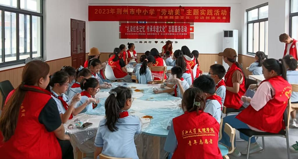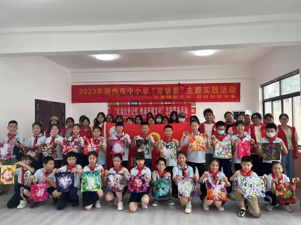 本次系列活动包含“编中国结,织文化梦”和“扎染红色记忆,传承非遗文化”两个主题。活动过程中,志愿者们不仅向孩子们讲述了这两项传统技艺的起源、发展、技巧和特点,还“大手拉小手”共同制作中国结和扎染作品,零距离感受传统技艺的魅力。最后全体人员进行合影,拿着一个个精巧的中国结和五彩斑斓的扎染作品,大家脸上洋溢着笑容。