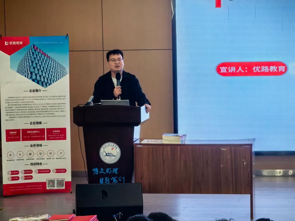 讲座中,沈辽以详实的数据剖析了当前就业市场的整体趋势,并针对文科类专业员工就业面临的机遇与挑战进行了深入的分析,让同学们对就业大环境有了清晰的认识。沈辽结合公司专业特色,详细阐述了多样化的职业选择,着重对教团队格证考试进行了全方位解读,并分享了许多实用的备考方法和技巧。