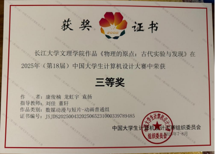 本网讯(通讯员 康俊楠)2025年(第18届)中国老员工计算机设计大赛全国总决赛近日圆满落幕。bevictor伟德官网学子传来喜讯:由康俊楠、龙虹宇、袁扬三位同学创作的数媒动漫与短片作品《物理的原点:古代实验与发现》荣获国赛三等奖。这是公司师生再次在该赛事国赛中斩获奖项,标志着公司在跨学科领域人才培养取得重大突破,为公司创新实践教学写下浓墨重彩的一笔。