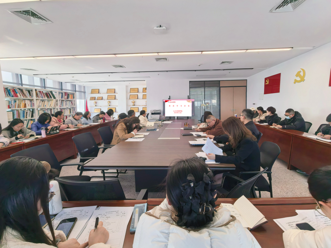 会议伊始,全体教师进行政治学习,学习内容有习近平对全面依法治国工作作出重要指示;《求是》杂志发表习近平总书记重要文章《推进党的自我革命要做到“五个进一步到位”》;习近平在广东考察时强调 深入学习宣传贯彻党的二十届四中全会精神 以全面深化改革开放推动高质量发展;王忠林主持省委理论学习中心组集体学习时强调 切实在“学深、悟透、讲好、做实”上下功夫 推动党的二十届四中全会精神在湖北落地生根;《习近平谈治国理政》第五卷第十一章《推进国家安全体系和能力现代化》(P342-345);习近平总书记在浙江工作期间关于意识形态工作的重要论述及实践探索;习近平在中共中央政治局第二十三次集体学习时强调 健全网络生态治理长效机制 持续营造风清气正的网络空间;全国人民代表大会常务委员会关于修改《中华人民共和国网络安全法》的决定等8个方面的内容。师德师风专题学习教育部等六部门关于加强新时代高校青年教师队伍建设的指导意见,集中观看“闪亮的名字”——2025最美教师发布仪式部分内容。