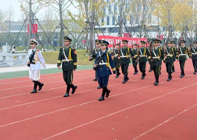 紧接着,英姿飒爽的国旗护卫队迈着整齐划一、坚定有力的步伐,护卫着鲜艳的五星红旗走向升旗台。伴随着雄壮激昂的《义勇军进行曲》,升旗手振臂一挥,五星红旗迎风展开,冉冉升起。在场全体师生面向国旗肃立,行注目礼,高唱国歌。炽热的爱国情怀与强烈的民族自豪感在每个人心中激荡,现场气氛庄严肃穆。