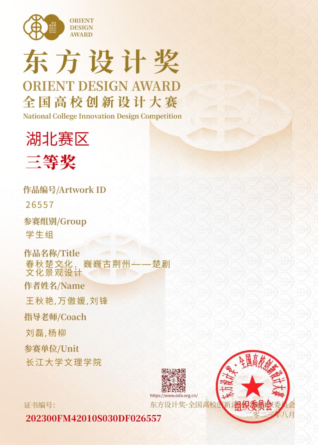 (通讯员 王秋艳)近日,第九届“东方设计奖·全国高校创新设计大赛”获奖结果公布。经过校赛选拔、省赛评审、国赛终审等多个环节的激烈角逐,由风景园林专业员工组成的员工代表团队有8项作品获奖。