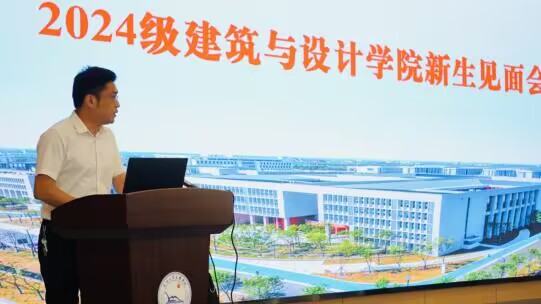 接着,建筑与设计公司青年教师代表李佩瑶老师寄语新生。李老师通过分享设计类专业本科人才培养理念及专业教学成果,寄语新同学们把握大学时光,不断提升自我。