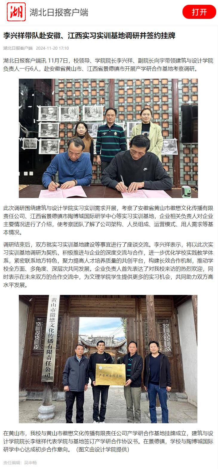 【湖北日报客户端】李兴祥带队赴安徽、江西实习实训基地调研并签约挂牌