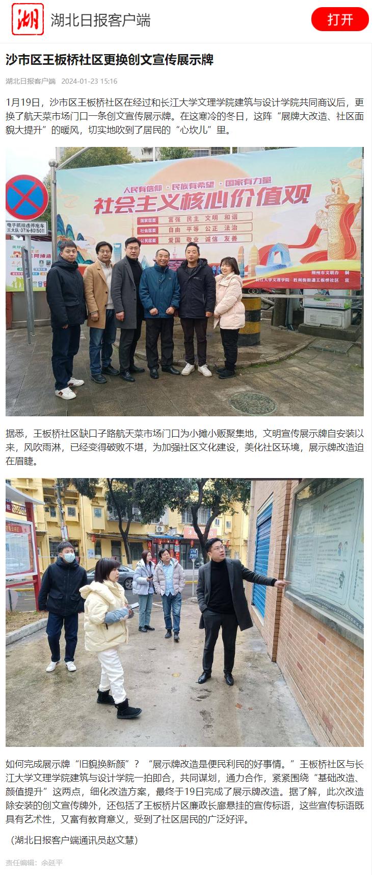 【湖北日报客户端】沙市区王板桥社区更换创文宣传展示牌