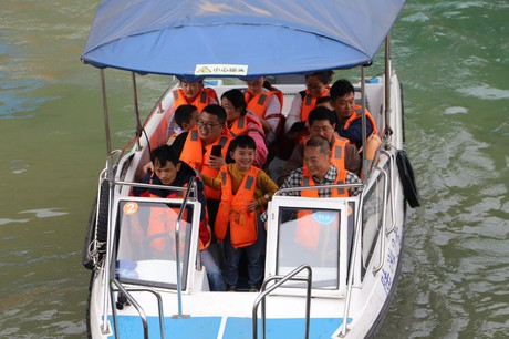 一路上,流水潺潺,虫吟鸟鸣。大人们,或拍照观景,或畅谈人生;孩童们则追逐嬉戏,喜不自胜。乘游轮徜徉在长江之上,心旷神怡。坐飞艇冲击在谷底浪尖,惊叫不绝。喷泉在众人齐力高声呐喊中一次次冲击高度极限,映入蓝天,诠释团结的力量。