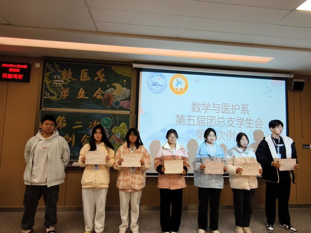 随后,数学与医护系第五届团总支员工会主席团成员李锦辉、赵南燕、荣梓心为优秀工作者颁发了证书并合影留念。