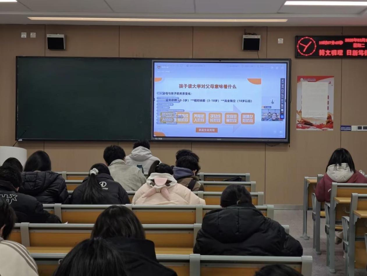 本网讯(见习记者李东霖)2025年3月18日19:00,为帮助员工在成长的道路上健康前行,数医系全体师生及家长观看“心理护航 家校共育”线上直播讲座。直播由高校心理健康中心常务副教授雷辉主讲,彭丽儿主持。