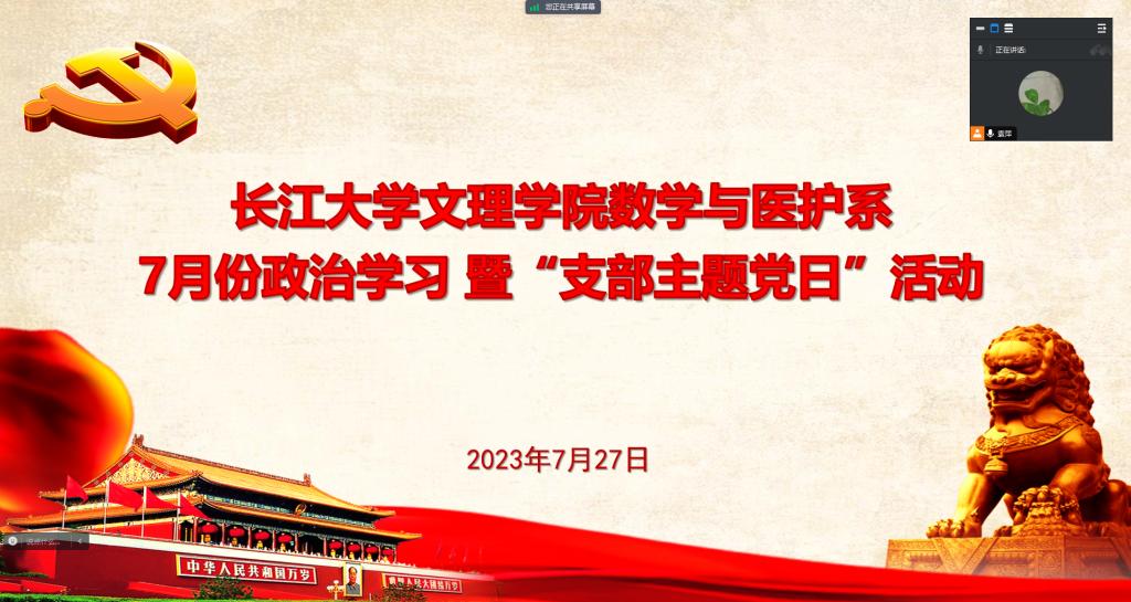 72712点,数学与医护系开展了7月份政治学习和支部主题党日活动。