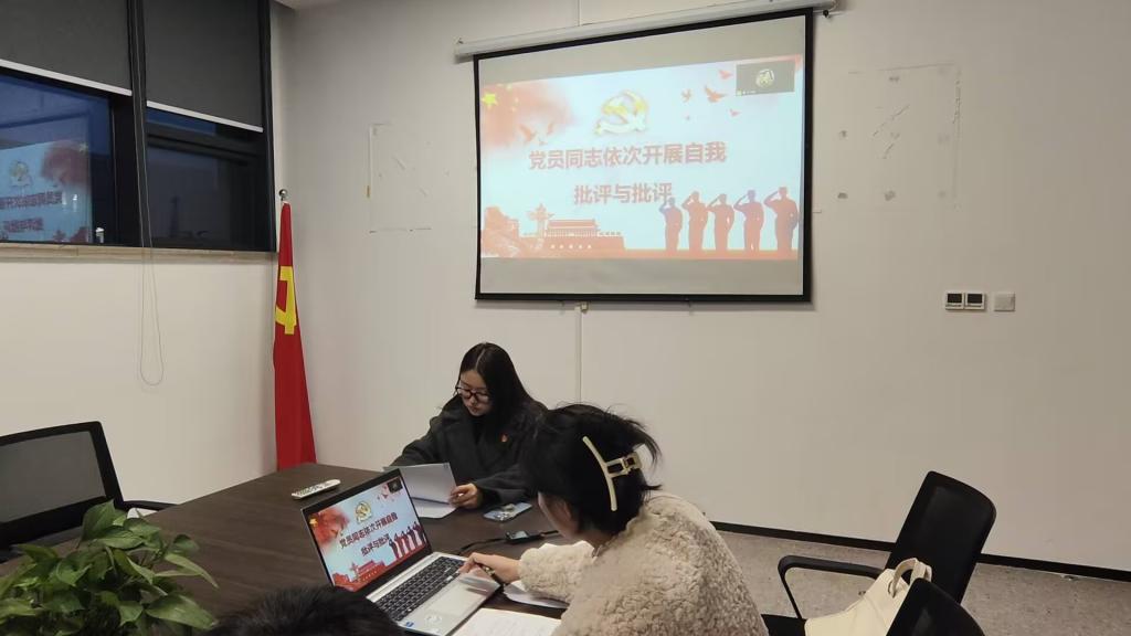 组织生活会阶段,燕梦蝶同志带领全体党员深入学习贯彻习近平新时代中国特色社会主义思想并代表支部委员会作工作报告,报告回顾了过去一年党支部在公司党委领导下开展的各项工作及取得的成效,包括组织理论学习、活动开展、社会实践等方面。她强调,全体党员需继续凝心聚力,围绕公司中心任务,为支部建设注入新活力。接下来,全体党员依次进行自我剖析,深入查摆思想、学习和工作中的不足;其他党员同志则开诚布公地提出意见建议。通过坦诚交流,党员们进一步明确了改进方向,纷纷表示将以实际行动践行初心使命。民主评议党员阶段,全体成员严格按照政治表现、工作学习、组织生活、遵纪守法及道德品质等评议标准,以无记名方式对支部党员进行客观公正的评议,充分体现了党员民主监督的严肃性与规范性。最后,燕梦蝶作总结发言,她指出,此次会议是一次思想淬炼、政治历练的生动实践,全体同志要以此为契机,持续强化理论武装,锤炼党性修养,立足岗位担当作为,为公司高质量发展和党的事业贡献青春力量。