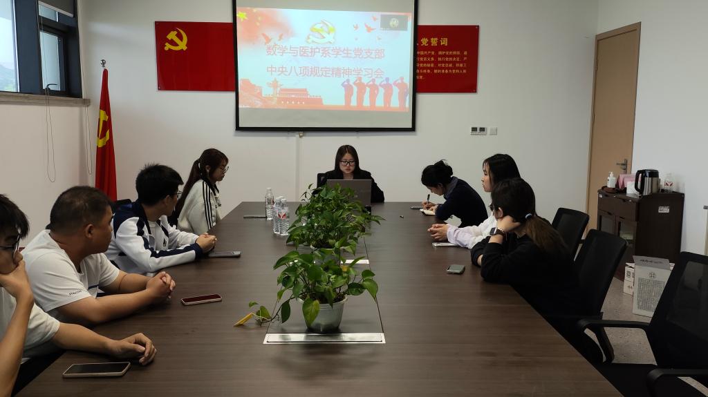 本网讯(通讯员夏怡玲)4月11日中午,数医系员工党支部在系部会议室开展4月份政治学习和“支部主题党日”活动。会议由数学与医护系员工党支部书记燕梦蝶主持,支部全体党员参加。