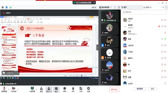 2022年10月27日下午,鉴于疫情防控要求,马克思主义公司党支部通过腾讯会议平台,开展了一场线上政治理论学习和支部主题党日活动。