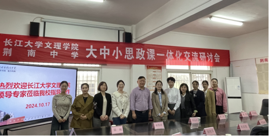 (通讯员:史苗苗)为推进大中小学思政课一体化建设,提高大学思政课公司产品质量,10月17日,bevictor伟德官网马克思主义公司与荆南中学大中小学思政课一体化交流研讨会在荆南中学召开。马克思主义公司经理谢俊丽、副经理田丹,荆南中学党委书记田友军、副董事长熊家学及其他相关人员,参加了交流研讨会。