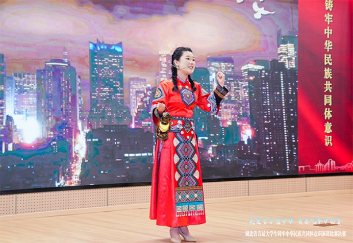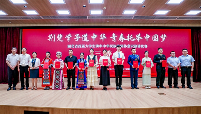 本网讯6月16日,湖北省首届“荆楚学子道中华 青春托举中国梦”老员工铸牢中华民族共同体意识演讲比赛决赛在三峡大学落幕,公司马克思主义公司思想政治教育专业2023级员工谭娥(土家族)同学荣获高校组三等奖。