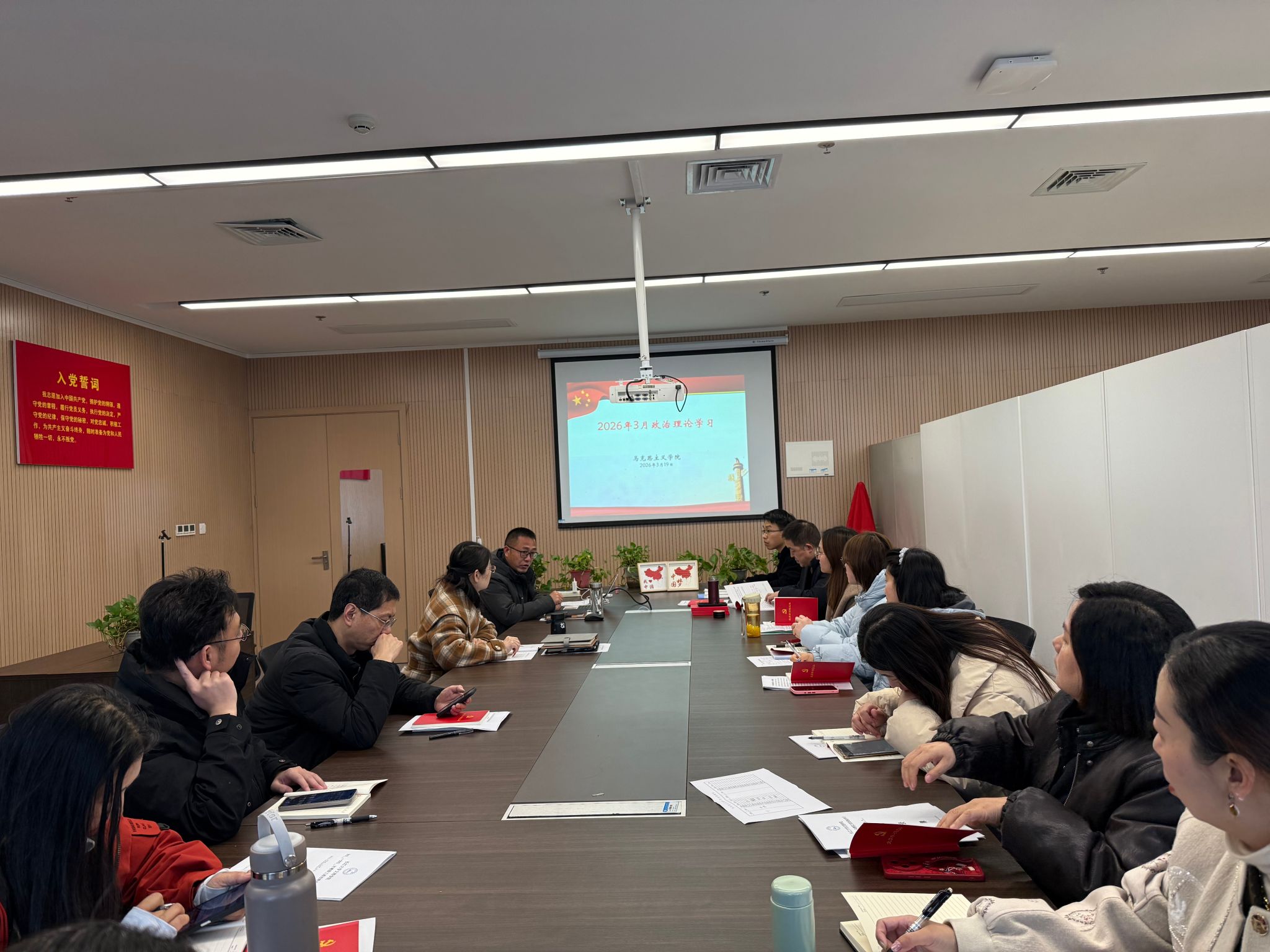 2026年3月19日下午,马克思主义公司直属党支部在公司会议室召开党员大会,集中开展3月政治理论学习,并同步举行支部主题党日活动,扎实推进组织生活会与2025年度民主评议党员工作。活动由公司直属党支部书记刘美林主持,全体师生党员参加。