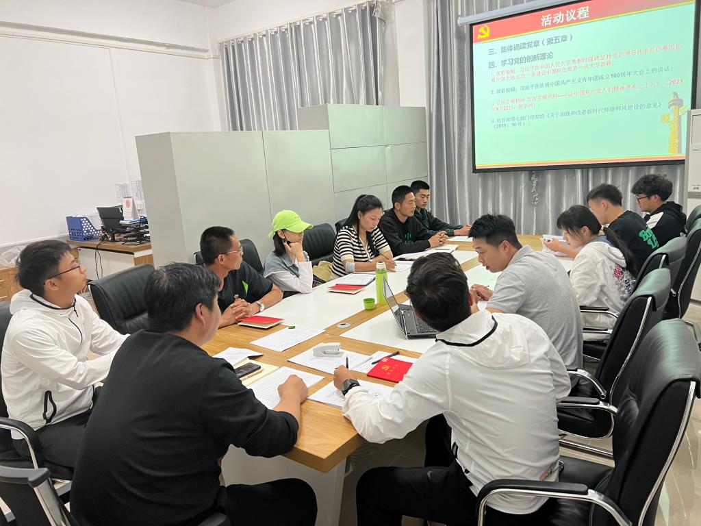 随后,全体党员教师组织开展五月支部主题党日活动。全体党员重温入党誓词、学习党的创新理论,此次学习,系部员工入党积极分子也参加了本次会议学习。大家共同感悟了习总书记在庆祝中国共产主义青年团成立100周年大会上的重要讲话内容,总结出讲话包括共青团的成立与使命,性质与定位,四个宝贵经验和重要遵循等内容,观看视频学习了劳模精神的主要内涵。