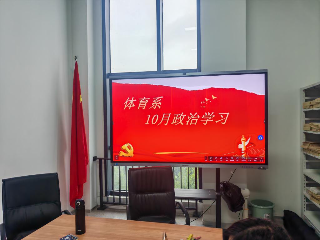 本网讯 10月17日下午4:00,体育系全体教职工及员工党员在313会议室开展10月份政治理论学习活动。体育系教工党支书记邱凤霞主持会议。
