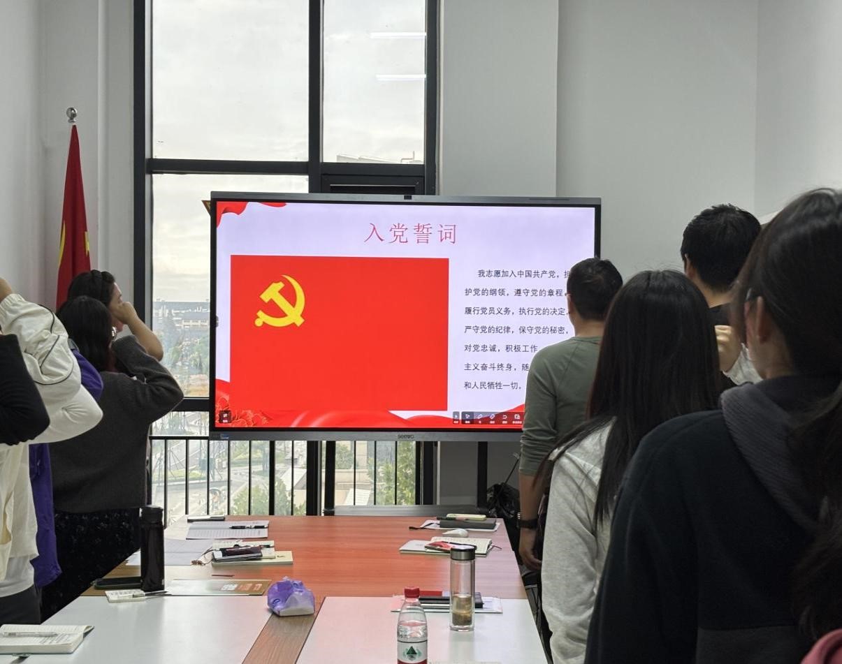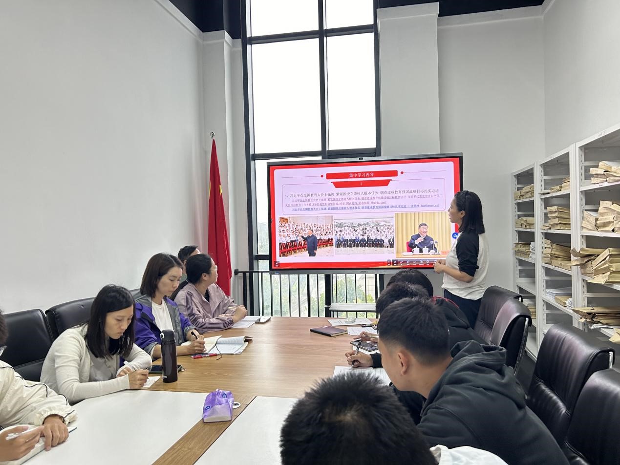 本月主题党日活动的主题为“持续深入学习贯彻党的二十届三中全会精神”。会议开始,全体党员重温入党誓词,缴纳当月党费。教工支部书记邱凤霞老师带领大家一起学习《党章》(第一章)。