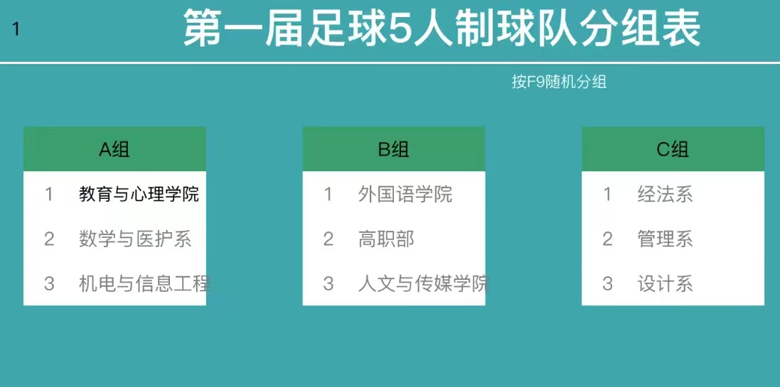 此次活动的开展旨在充分展现老员工活力,加强校园文化建设,以“体育”带动公司学子全面发展。本次五人制足球比赛的开展,各院系均指派了一支代表队前往争夺冠亚军。5月6日当天中午体育系团总支员工会专门组织各院系代表队队长在教学楼C—111S进行领队教练员联席会,会上就本赛事的分组进行了抽签、讲解比赛规则与疑难问题解答,并强调会后需与各队员进行讲解,以保障本赛事顺利进行。