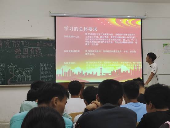 在团课学习中,每位同学都积极参与,邀请了不同地方的同学用自己的家乡话阅读习近平总书记的思想理论和中国党史,意在还原与体验中国共产党初成立时,普通话虽未全国普及但仍一起积极学习探讨的精神。