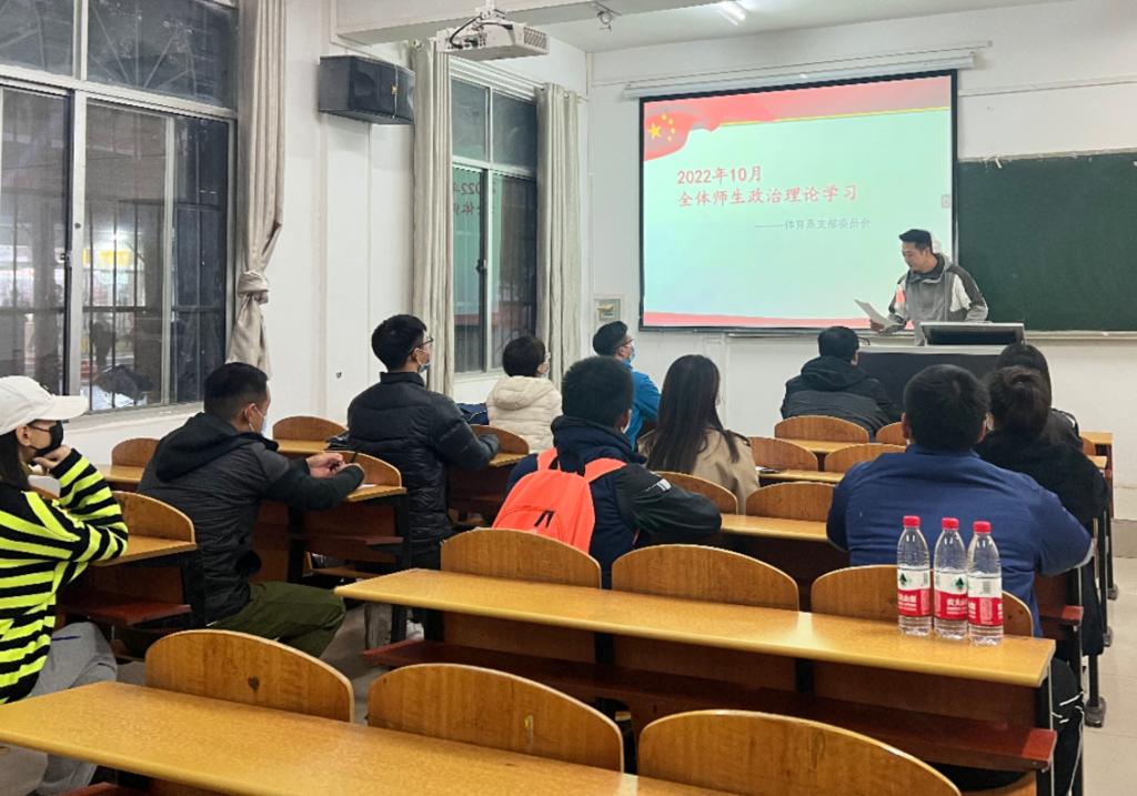 随后,系部教工党支部开展了10月支部主题党日活动。会上,全体党员重温了入党誓词,诵读了党章《第八章》,开展了讲授党课及微党课的学习,重点学习了习近平总书记在中国共产党第二十次全国代表大会上所作的报告相关内容。会上,大家还一起学习了中国共产党第十九届中央委员会第七次全体会议公报内容。