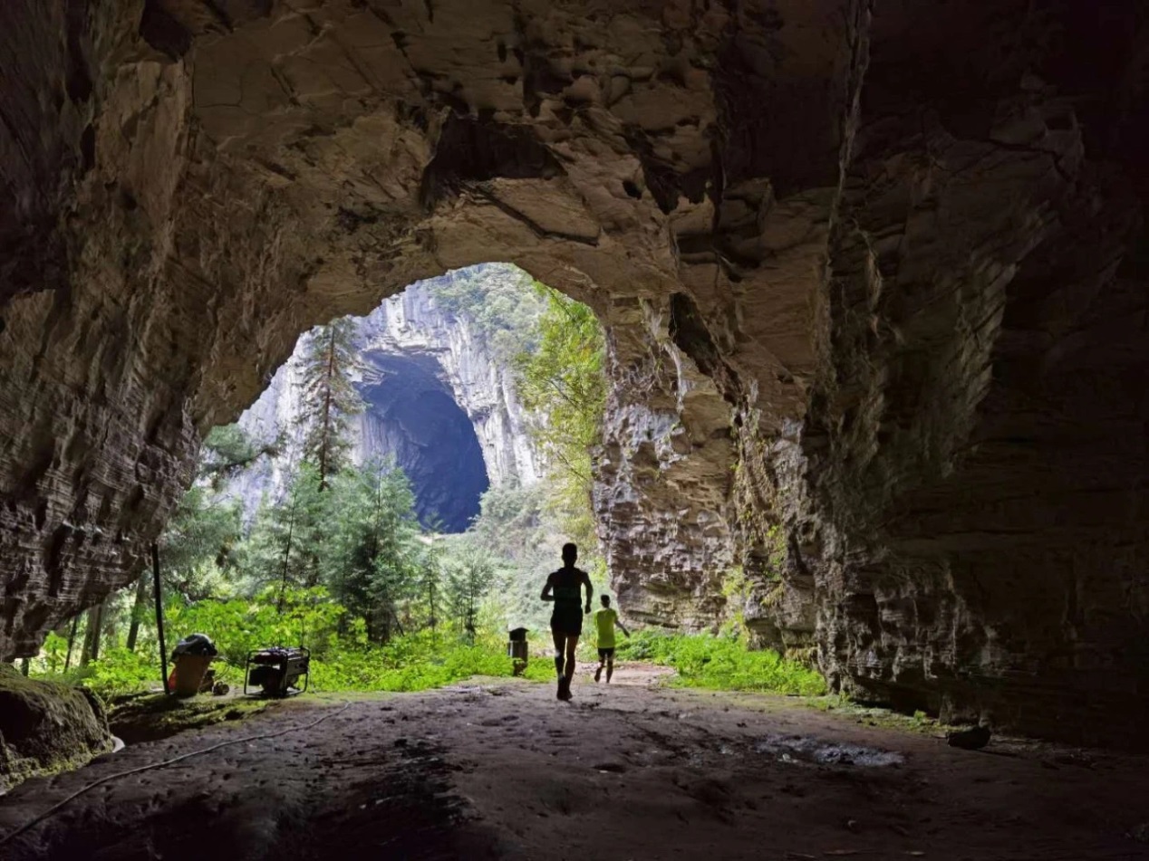 运动员穿越三龙洞