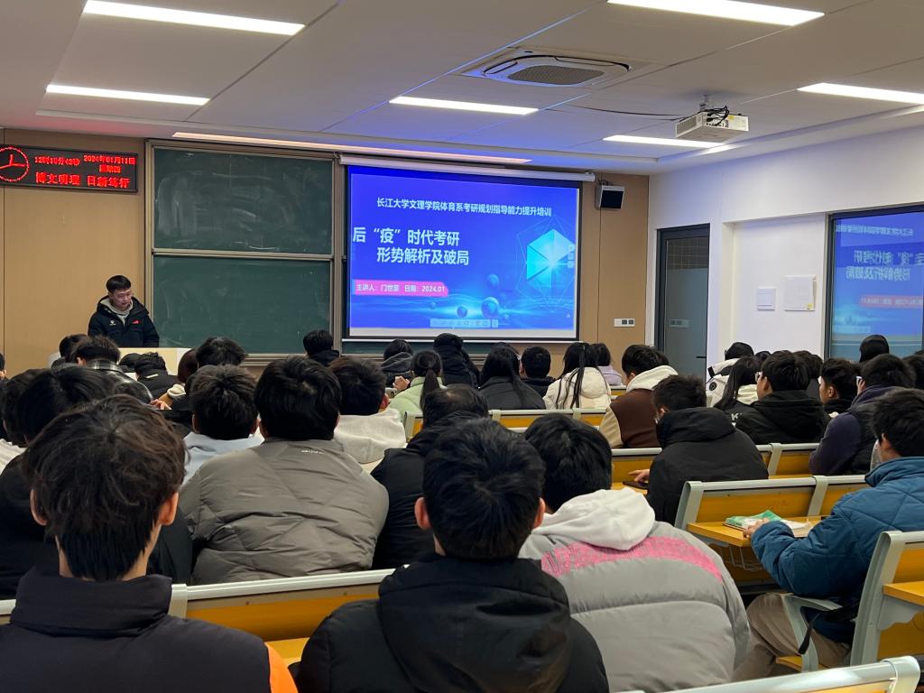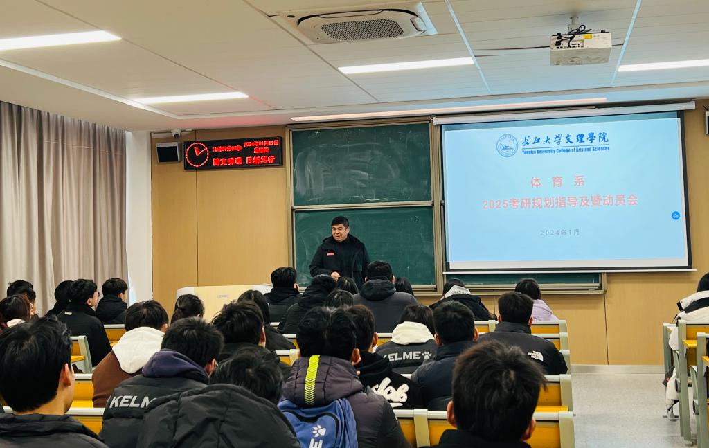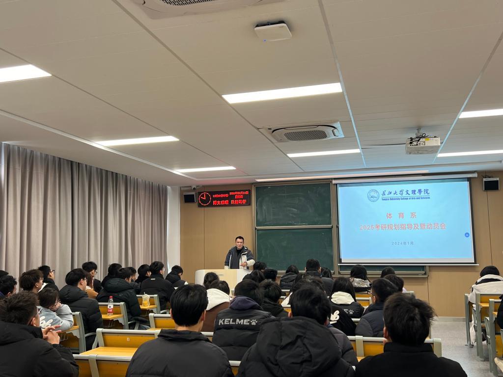 本网讯(通讯员 卢馨怡)为提升体育系全体学子的考研热情,明确考研目标,1月11日中午,在教学楼C-215教室召开了体育系2025考研规划指导暨动员会”。体育系主任介博、党总支书记邹姜参加了本次动员会,会议由体育系辅导员门世豪老师主持。