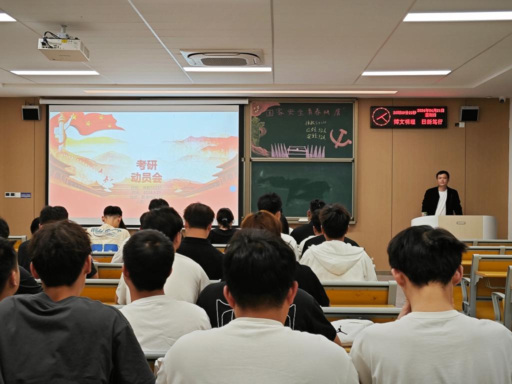 本网讯(通讯员 门世豪)421日晚,体育系在教学楼分别召开了2021级本科生、2023级专升本考研动员大会。党总支书记邹姜、主任介博前往不同班级开展了本次考研动员活动。据悉,这是我系针对2025届毕业生召开的第二次考研宣讲暨动员活动,活动开展前,体育系员工工作部门收集同学们的考研意向,听到了部分同学对“考研”拿不定主意、不了解考研政策、确定不了考研院校等声音。因此,本次活动的开展正是为了有效帮助存在以上问题的员工,为他们下定决心增添助力。