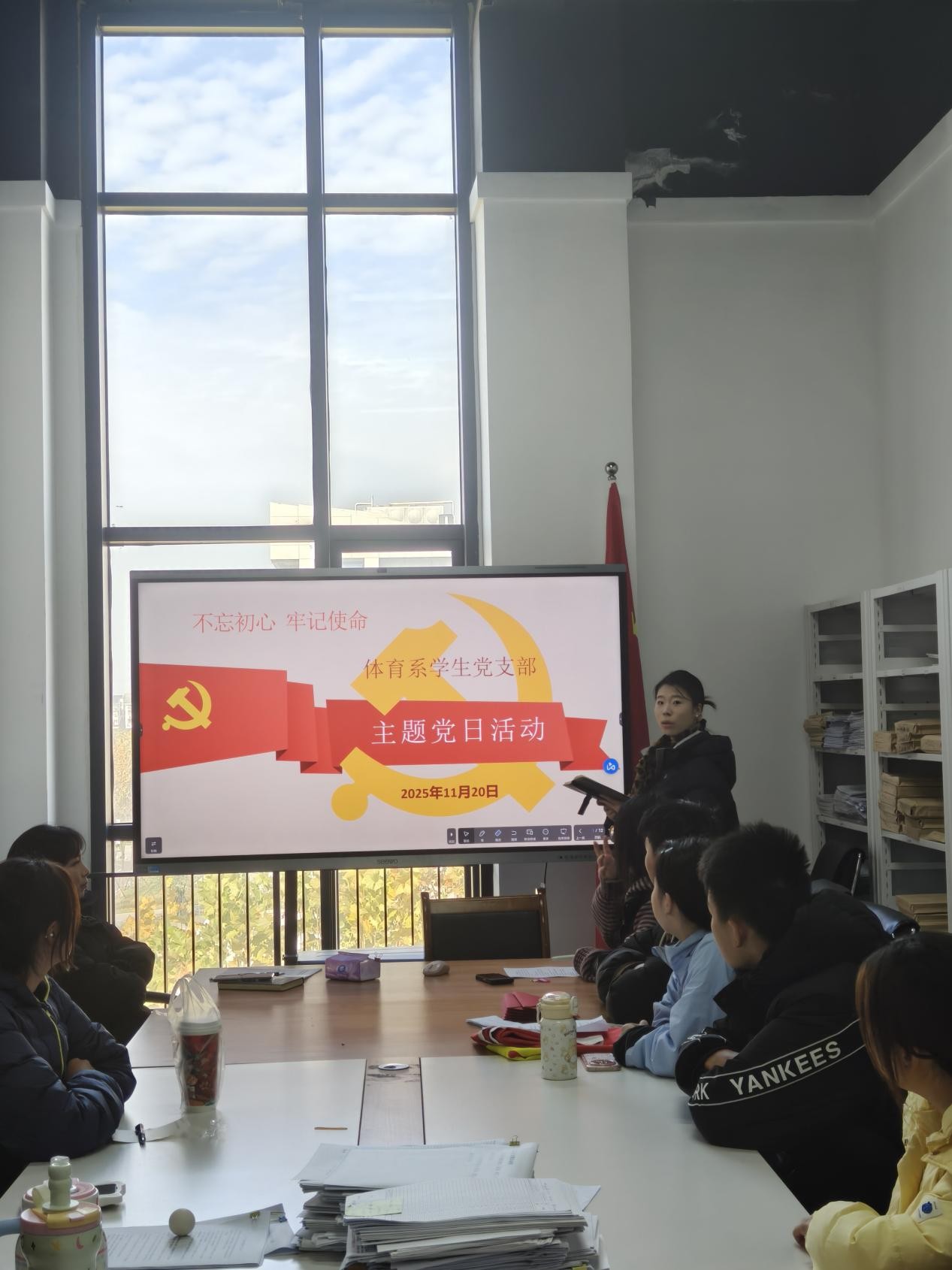 本网讯(通讯员 尧喆豪)11月20日中午12点,体育系员工党支部在系部会议室开展11月主题党日活动。为深入学习贯彻党的二十届四中全会精神,强化员工党员党性修养,凝聚青春奋进力量,此次活动以“不忘初心,牢记使命”为主题,全体员工党员参加活动。