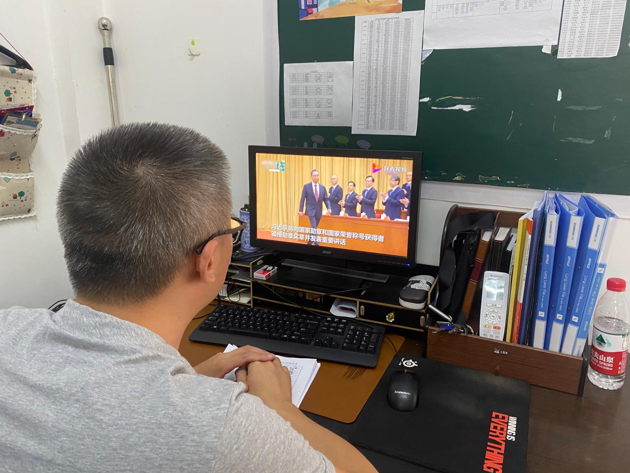 在观看抗击新冠肺炎表彰大会的过程中,同学们切实感受到逆行而上,至死不悔的抗疫精神;致敬抗疫之战中屹立不倒,披荆斩棘的最美逆行者。