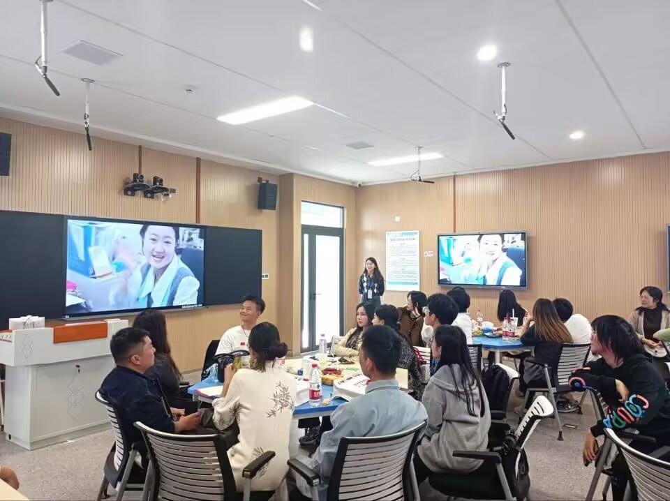 会上,员工们依次进行自我介绍,他们热情分享自己的事业成就和发展近况,并为公司未来的发展献上了真挚美好的祝福。志愿者们也进行了自我介绍,表示要向优秀的学长学姐们学习,朝着成功的方向努力奋进。随后王玲玲书记对员工们的到来表示热烈欢迎,话语中满含对员工们的深情厚谊以及对此次座谈会的期待。在温馨的氛围中,大家共同观看短视频,视频带领众人回顾在老校区的点点滴滴,勾起了员工们和老师们深深的回忆,引发了强烈的情感共鸣。