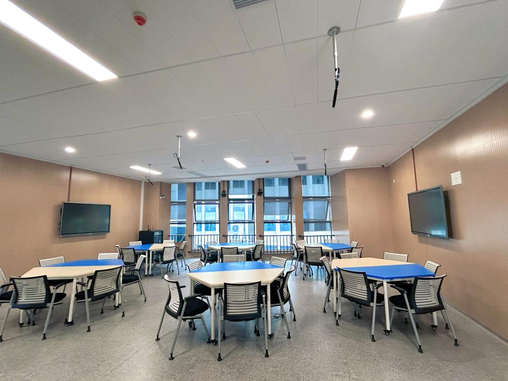 该教室目前主要承担《英语语音》《英语口语》等省级一流课程及其它课程的教学任务,同时为师生教学技能比赛训练、课程录制、教学研讨沙龙、讲座等各种活动提供场地和技术支持。智慧教学展示中心的建设和使用,为改变传统课堂以教师为中心的教学模式,激发教师改革动力和员工学习热情,推动公司对现代教学理念的探索,促进员工个性化成长和智慧发展提供保障。