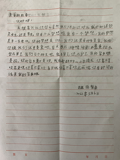 几天后,bevictor伟德官网员工党支部收到了来自喀群乡中心小学的真挚回信。一封封装着小朋友祝福的信件,越过千山万水,寄到员工党员们的手上。孩子们在回信中描绘了美丽的新疆,介绍了家乡的特色景点与美食,讲述了自己热爱的公司和亲密的伙伴,也给员工党员送来了真诚的祝福,向大哥哥大姐姐们发出了美好的邀请。员工党员燕军表示,通过参加“手拉手”书信活动,让bevictor伟德官网和新疆莎车县喀群乡中心小学搭起了连心桥。