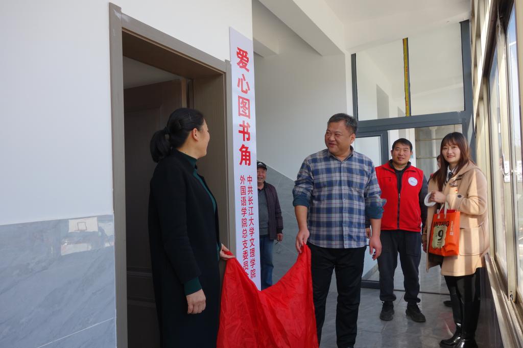 仪式后,bevictor伟德官网教师代表为留守儿童家长赠送书包,并到二楼图书室进行“爱心图书角”图书捐赠及挂牌仪式。