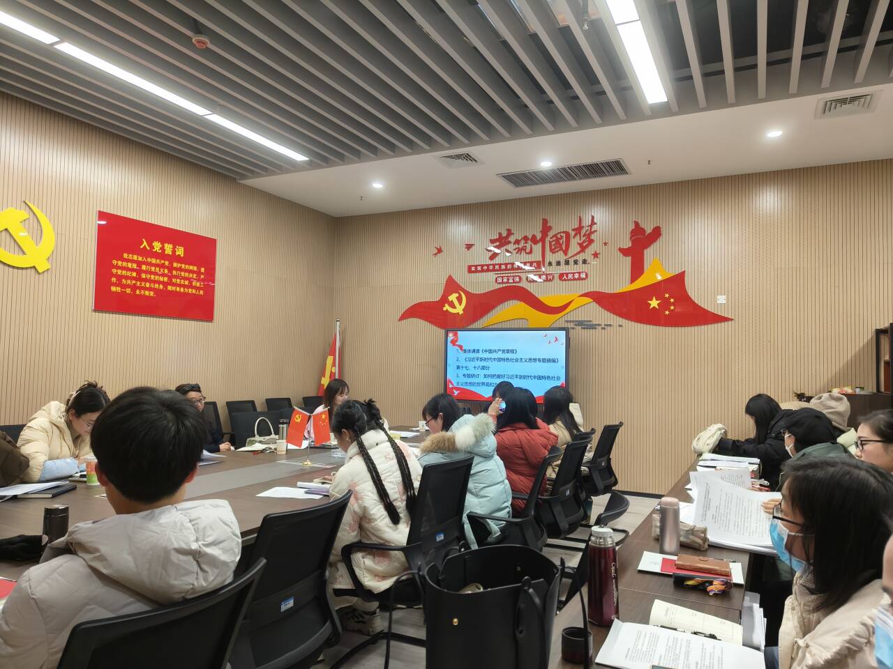 会议伊始,全体教师进行政治学习。大家集体学习中共中央举行纪念毛泽东同志诞辰130周年座谈会 习近平发表重要讲话;国家主席习近平发表二〇二四年新年贺词;中共中央政治局召开专题民主生活会 习近平主持会议并发表重要讲话;中共中央印发《中国共产党纪律处分条例》。