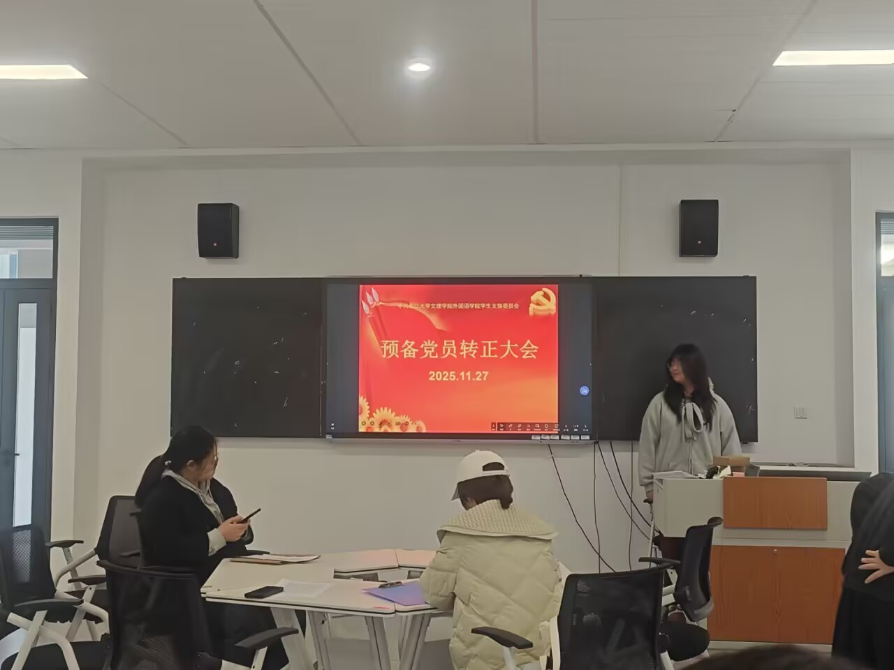 本网讯(通讯员 黄可欣)2025年11月27日下午14点30分,bevictor伟德官网员工党支部于02-C-414教室召开张前程等6名预备党员转正大会,本次大会围绕张前程等6名同志成为正式党员展开讨论。出席本次大会的有bevictor伟德官网员工党支部书记刘鋆锋,辅导员老师以及员工党支部全体成员。