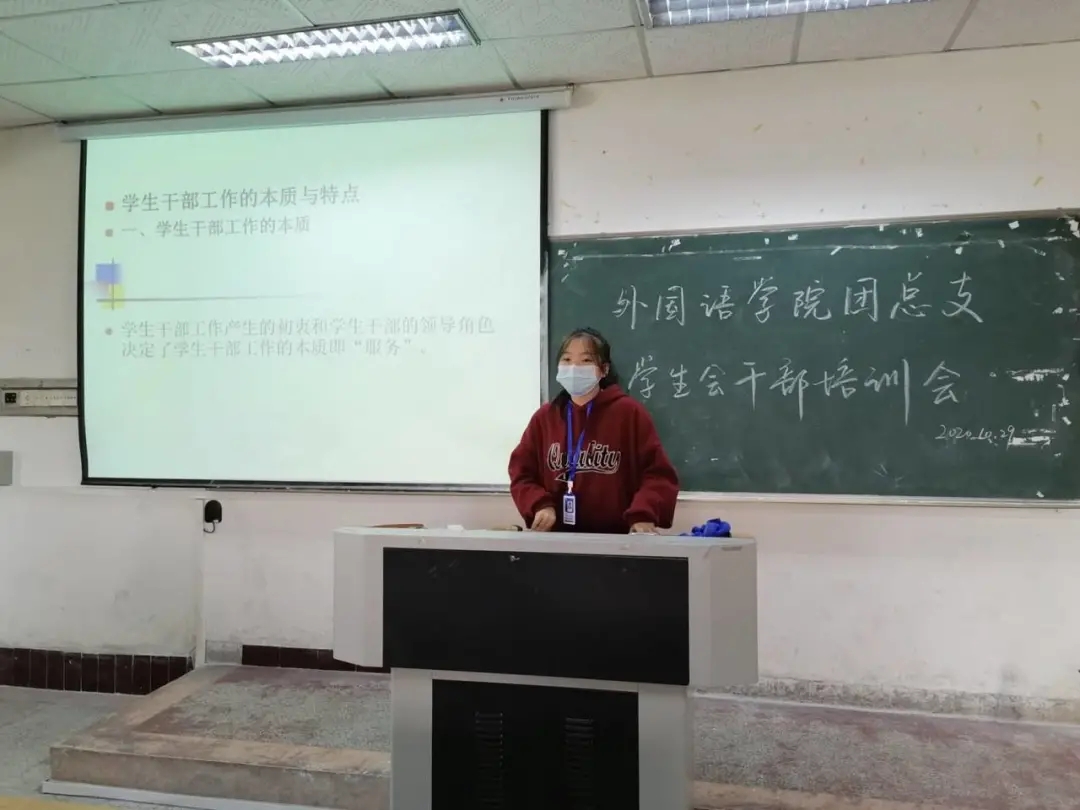 随后,副主席余晶晶上台讲话,对于员工干部工作的要素、本质与特点和作用进行概述,着重强调员工干部工作的本质即服务。她指出员工干部的能力有大小,但态度决定一切,希望各位员工干部在任职期间,提升自己的能力,做有务实精神的人。