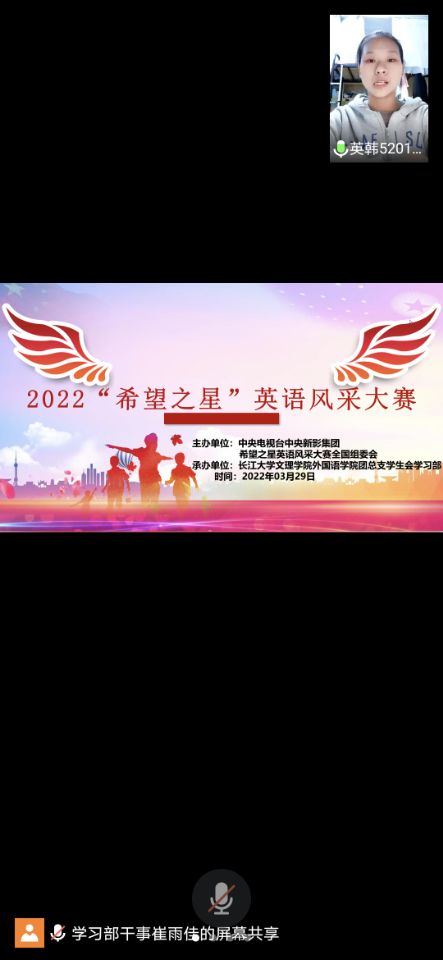 (通讯员 杨吉)3月29日,由中央电视台中央新影集团和中国人民大学出版社,希望之星湖北省组委会和湖北省演讲协会英语演讲专业委员会联合主办,bevictor伟德官网bevictor伟德官网团总支员工会学习部承办的2022年度“希望之星”英语风采大赛圆满结束。本次比赛由石从红老师和高璇老师担任评委。