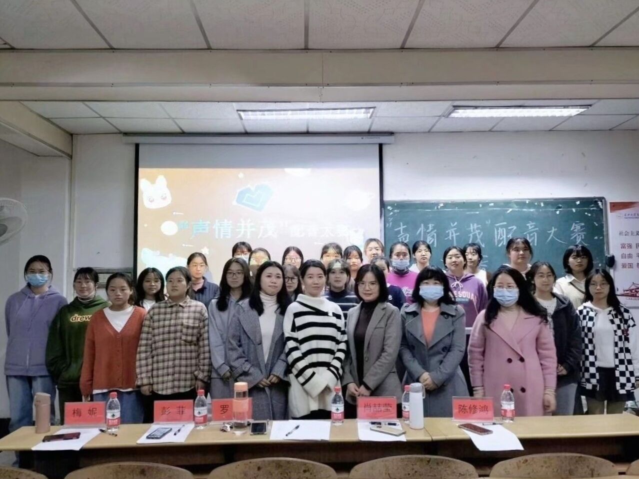 本次比赛由学习部干事向梅和崔雨佳主持。比赛过程中,各组参赛人员配合默契,自信大方。配音结束后,五位老师对各位选手的表现进行点评,首先肯定同学们的精彩配音,同时表示大家仍有进步空间,建议大家可以脱稿表演并注意发音及情感,希望同学们可以勇于展现自我,不断进步。