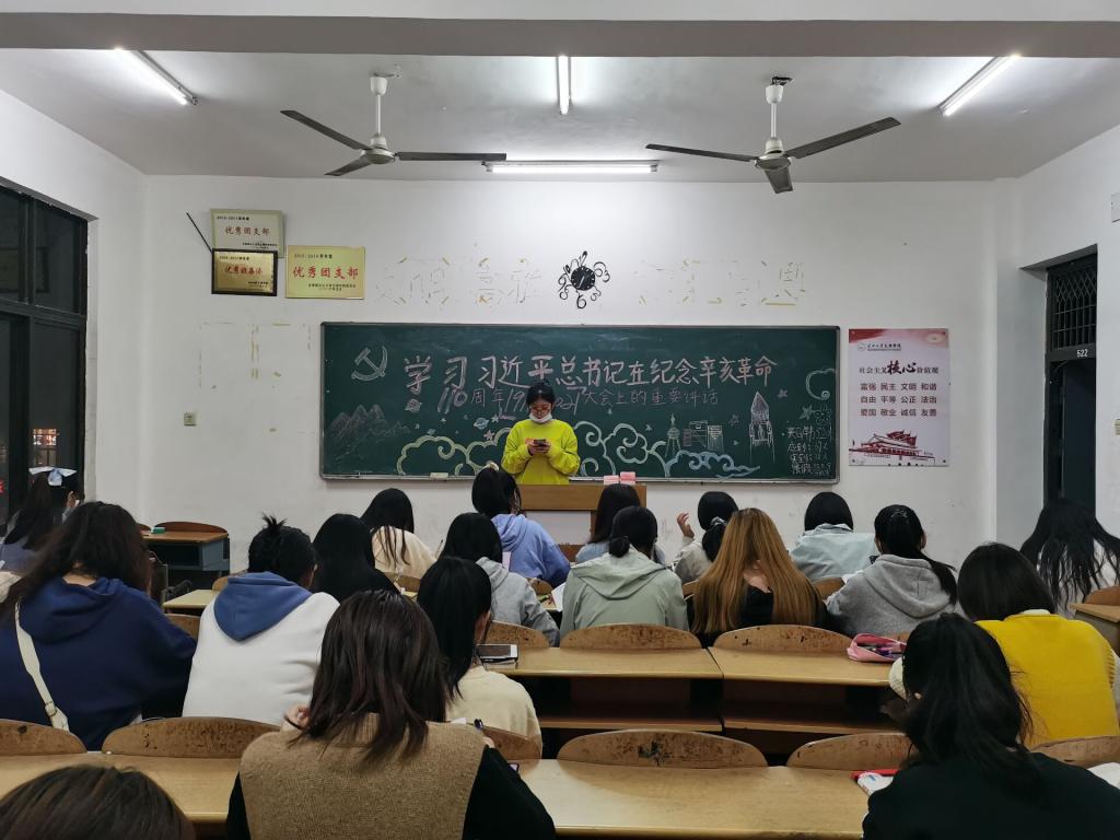 (通讯员 高业萌)10月13日晚7点,bevictor伟德官网各班组织开展“学习习近平总书记在纪念辛亥革命大会上的讲话”主题团课,本次团课由各班班委主持。