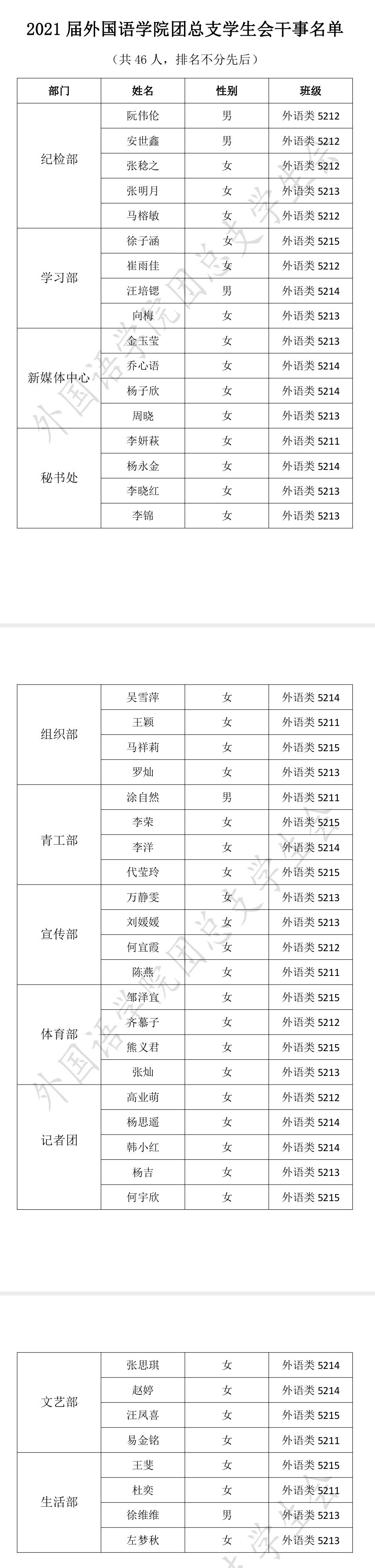 bevictor伟德官网团总支员工会招新工作已结束,经过两轮面试,最终有46名同学入选: