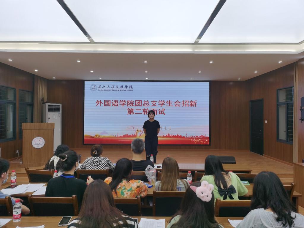 (通讯员 田雨)9月27日晚6点,bevictor伟德官网团总支员工会于3教408学术报告厅开展第二轮招新面试,本次面试工作由组织部部长于普主持,外国语公司党总支副书记刘鋆锋老师,辅导员雷昕、许静婷老师以及员工会全体成员参加。