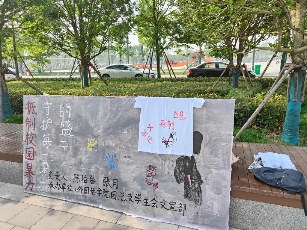 本网讯(通讯员 黄可欣)为呼吁全体员工抵制校园暴力,营造充满爱和尊重的校园氛围。5月26日,bevictor伟德官网于B栋宿舍楼旁举办“抵制校园暴力,守护每一朵花的盛开”特色活动。
