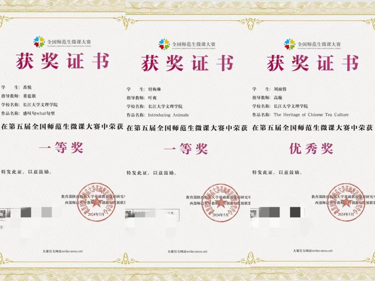 本网讯(通讯员 许静婷)近日,第五届全国师范生微课大赛圆满落幕,公司选送的3个微课作品在激烈的竞争中脱颖而出,取得骄人成绩,荣获一等奖2项,优秀奖1项,其中,英师5221班苏悦和商务5221班付梅琳均获一等奖,英师5211班刘雨情获优胜奖。