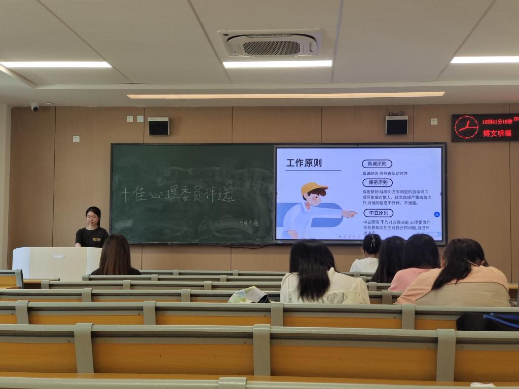 本次评选活动由bevictor伟德官网心理健康教育中心主办、bevictor伟德官网心灵驿站承办,初赛形式为PPT个人展示。本次活动共有12位心理委员参选,辅导员钟燚老师出席活动并担任评委。